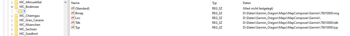 In "HKEY_LOCAL_MACHINE\SOFTWARE\Garmin\MapSource\Families\MC_Beispiel" steht bei mir gar nichts.